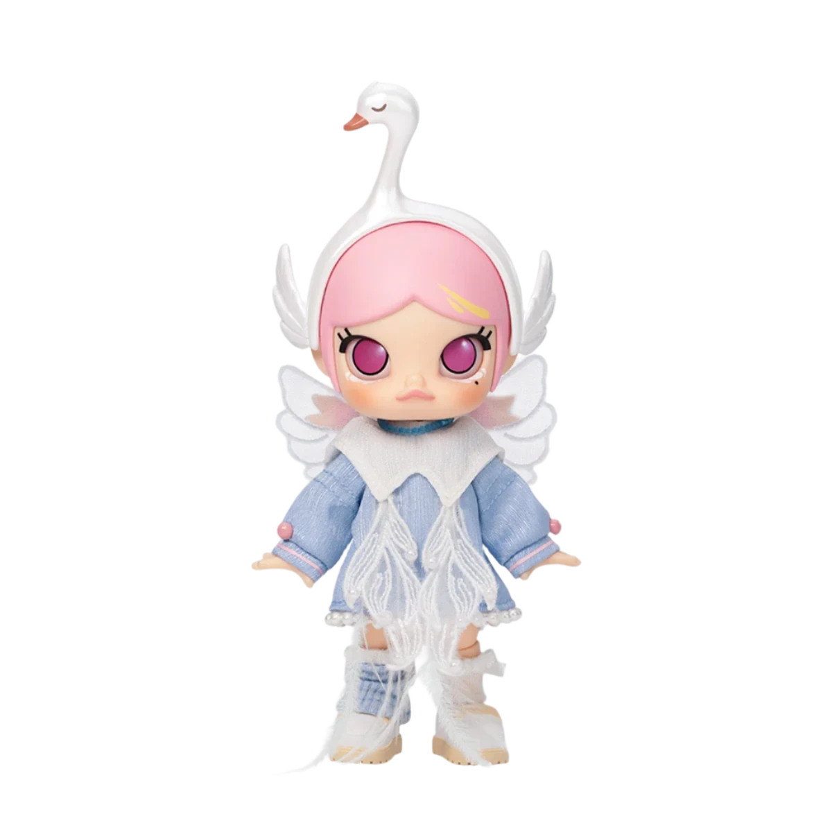 The MOLLY Metamorphose into Swan Action Figure by Pop Mart is a beautifully crafted and highly detailed collectible that captures the essence of elegance and transformation. Standing 13cm tall, this figure is designed with a mix of premium materials, including PVC, ABS, terylene, nylon, spandex, cotton, alloy, rayon, and ostrich feathers. Its detailed craftsmanship, soft fabrics, and graceful pose make it an exquisite addition to any collection. This MOLLY figure embodies grace and fantasy, perfect for fans who admire intricate designs and collectible artistry.